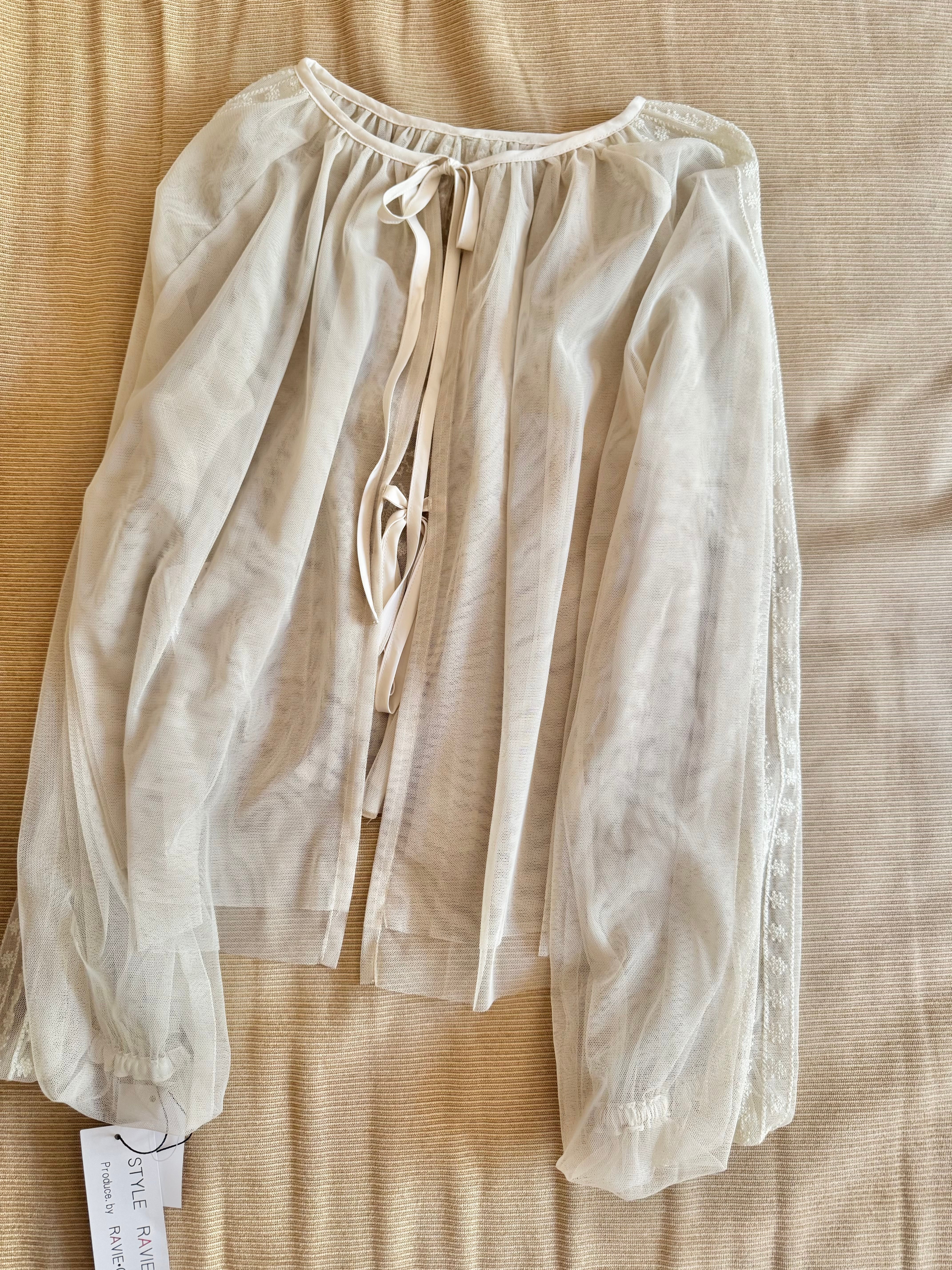 シアーレースドレープ袖ブラウス