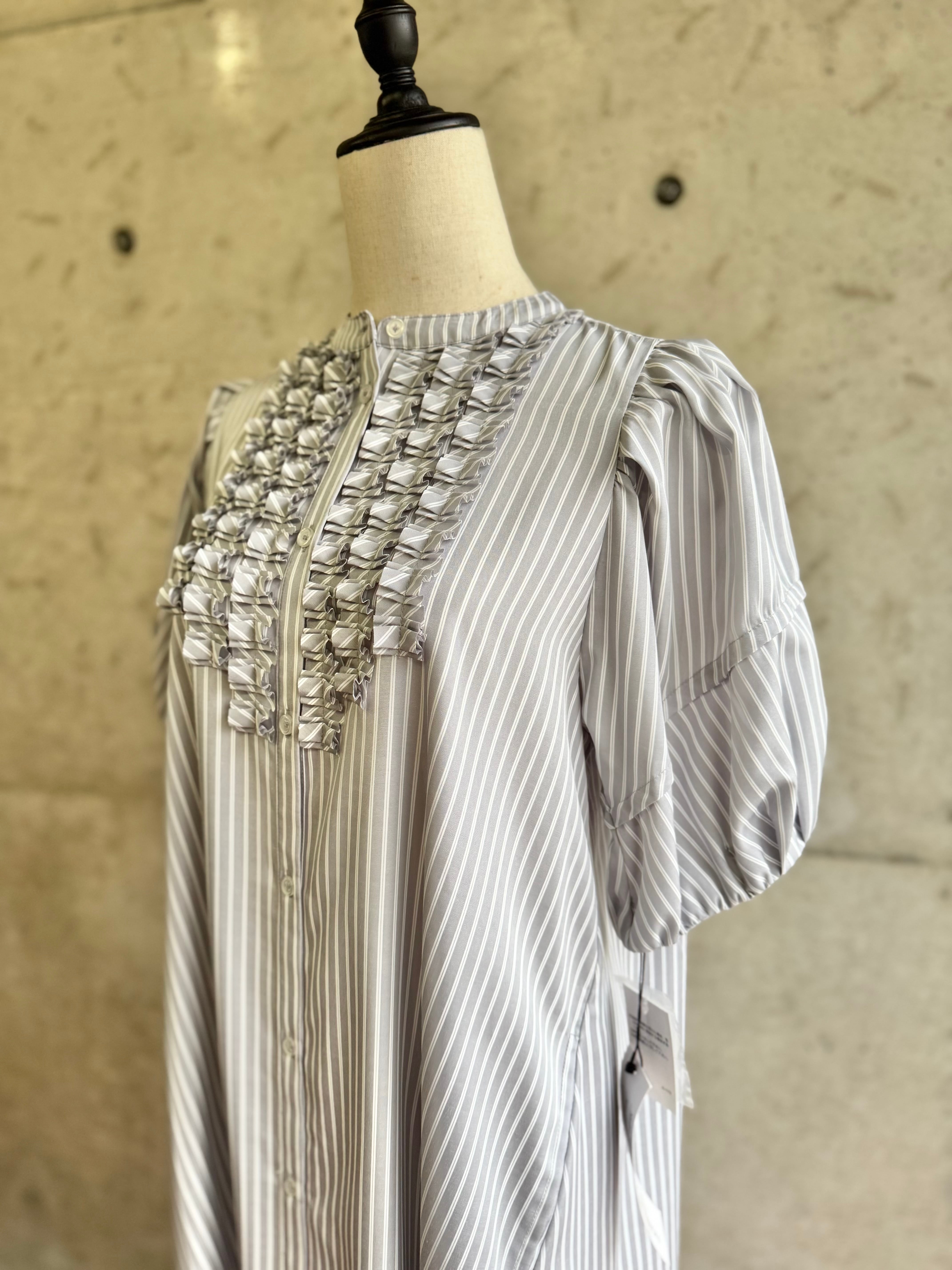 ストライプ フリルギャザーワンピース